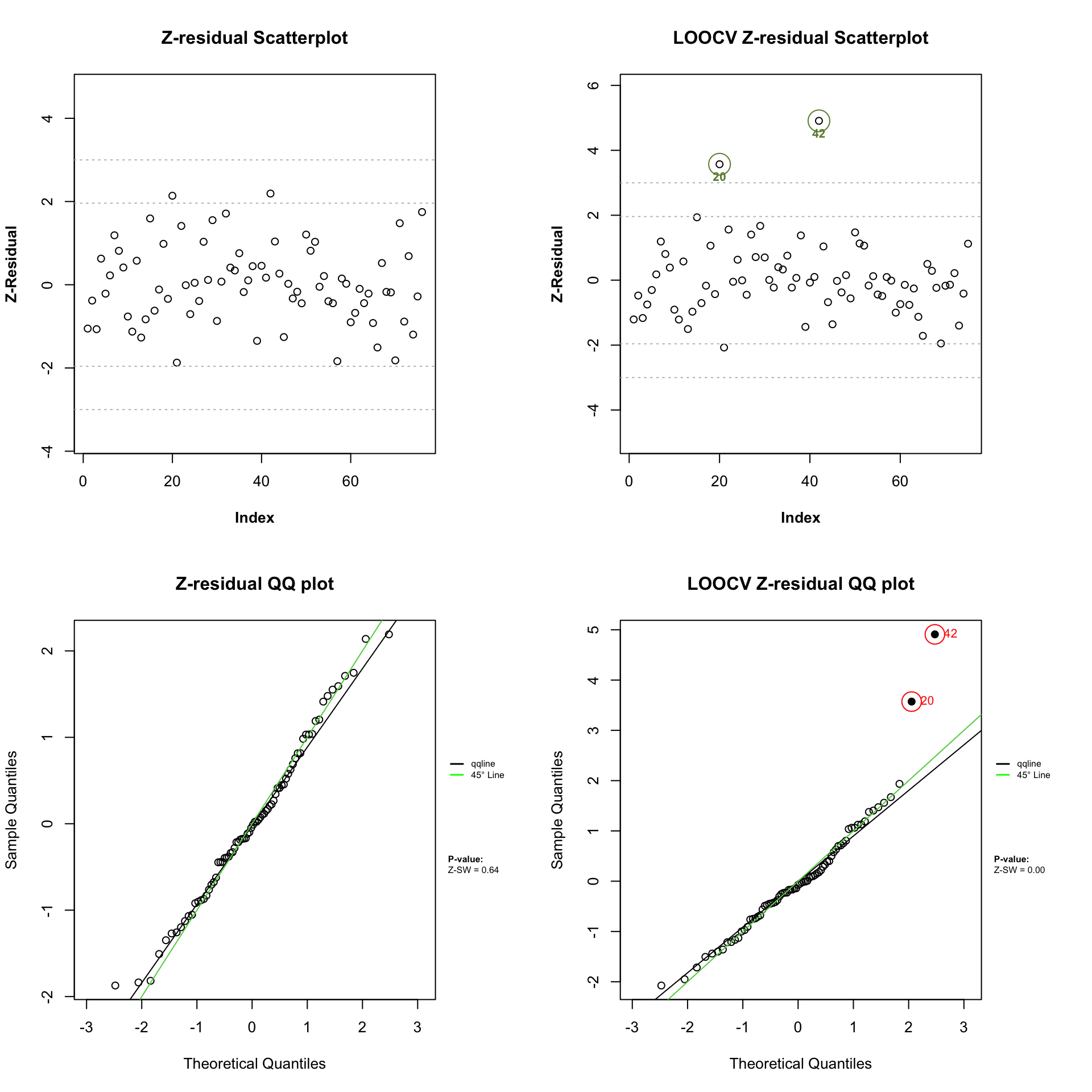 \tag{4} By repeating these steps for each observation (n times), a LOOCV predictive Z-residual is calculated for each observation.